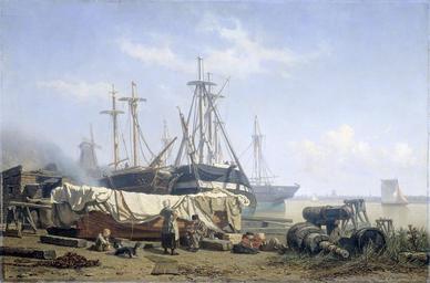 | Keywords: Schafttijd op een scheepstimmerwerf aan de Maas Rijksmuseum SK-A-1037.jpeg accession number SK-A-1037 Creator Johan Conrad Greive credit line nl Gezicht op een scheepstimmerwerf aan de Maas Een man eet zittend op een blok hout voor hem een vrouw met een kind Achter de personen een sloep afgedekt met zeilen In de werf liggen verschillende schepen die gerepareerd worden In de verte een molen drager Height cm 78 drager Width cm 119 exhibition history 2004-2007 Het Rijksmuseum aan de Merwede - A Dordrecht Institution Rijksmuseum Technique oil canvas object history Acquisition 1867 object type Potential derivatives exist check http //commons wikimedia org/w/index php search Rijksmuseum+SK-A-1037 this search PD-US PD-old Data and photography rights All data and all images made available through the API are either in the public domain or are subject to a CC0 license https //www rijksmuseum nl/en/api/terms-and-conditions-of-use cc-zero place of creation http //www rijksmuseum nl/collectie/SK-A-1037 Schafttijd op een scheepstimmerwerf aan de Maas Q17323706 Uploaded with GWToolset Schafttijd op een scheepstimmerwerf aan de Maas Rijksmuseum SK-A-1037 http //www rijksmuseum nl/media/assets/SK-A-1037 Images uploaded by Fæ Images from the Rijksmuseum Dutch 19th-century paintings in the Rijksmuseum Amsterdam Johan Conrad Greive |