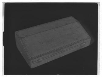 | Keywords: Schatull - Livrustkammaren - 62199-negative.tif LSH artwork sv Rektangulärt schatull med trästomme överklädd med brunt skinn utvändigt tryckt guldbård runt kanterna Locket slutes framtill med 2 små krokar Lockets främre bredsida 120 mm lutar pulpetliknande nedåt <br/>Invändig klädsel av rött sämskskinn med stoppning under original caption g 700 size mm 335 77 92 LRK place of origin original filename LN_E01513 47906 inventory number LRK 11244 62199 CC0 Schatull - Livrustkammaren - 62199 tif |