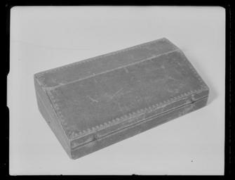 | Keywords: Schatull - Livrustkammaren - 62199.tif LSH artwork sv Rektangulärt schatull med trästomme överklädd med brunt skinn utvändigt tryckt guldbård runt kanterna Locket slutes framtill med 2 små krokar Lockets främre bredsida 120 mm lutar pulpetliknande nedåt <br/>Invändig klädsel av rött sämskskinn med stoppning under original caption g 700 size mm 335 77 92 LRK place of origin original filename LN_E01513 47906 inventory number LRK 11244 62199 CC0 Schatull - Livrustkammaren - 62199-negative tif Boxes Media contributed by LSH 2015-11 |
