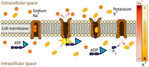 | Keywords: Scheme sodium-potassium pump-en.svg Example of primary active transport where energy from hydrolysis of ATP is directly coupled to the movement of a specific substance across a membrane independent of any other species Own work Image renamed from Image Sodium-Potassium_pump svg 2007-02-23 LadyofHats Mariana Ruiz Villarreal LadyofHats Scheme sodium-potassium pump-ca svg Scheme sodium-potassium pump-cs svg Scheme sodium-potassium pump-en-2 svg Scheme sodium-potassium pump-zh zh-tw svg Scheme sodium-potassium pump-zh svg <gallery> Scheme_sodium-potassium_pump-en svg Scheme_sodium-potassium_pump-pl svg Scheme sodium-potassium pump-he svg Scheme sodium-potassium pump-de svg Scheme sodium-potassium pump-ja svg Scheme_sodium-potassium_pump-ca svg Scheme_sodium-potassium_pump-bs svg </gallery> translation possible Biology diagrams Cell membrane SVG diagrams in English |