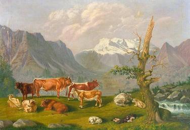MAKE A MEME View Large Image Scherrer Weidelandschaft.jpg Weidelandschaft in den Schweizer Bergen mit Katarakt und Gebirgshorizont oil on canvas 65 x 95 cm zeller de Johann Kaspar Scherrer 1739 “1806 PD-art Landscape paintings of Switzerland Agriculture in art Images ...