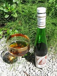 | Keywords: Scheurebe 1973 Rheinpfalz 031.jpg de Scheurebe Auslese 1973 Flemlinger Zechpeter Weingut Theo Minges Flemlingen an der Weinstaße Rhein-Pfalz Flasche geöffnet am 12 07 2012; Wein ist zum Firne-Wein d h über das Lageroptimum hinaus gealterter Wein geworden siehe den braunen Farbton des Weines own Nasobema lyricum 2012-07-22 Cc-zero Wine bottles 1973 vintage Wines of Palatinate | ||||