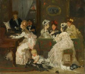 | Keywords: Schider-musikalische unterhaltung.jpg title de Musikalische Unterhaltung oil on canvas 32 0 x 36 5 cm bayer staatsgemäldesammlung object history collection Dr Max Meirowsky provenanceEvent theft Bayerische Staatsgemäldesammlung provenanceEvent 14 September 2005 langswitch the heirs die Erben restitution creator Fritz Schider 1874 PD-old-100 19th-century painters |