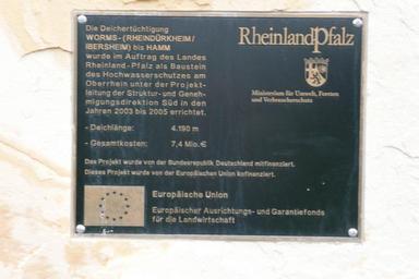 Keywords: Schild am Rheinhauptdeich.JPG de Schild am Rheinhauptdeich own Edmund Ritscher Sept 2008 Coats of arms in Worms Coats of arms of Rhineland-Palatinate Geography of Worms Worms-Ibersheim