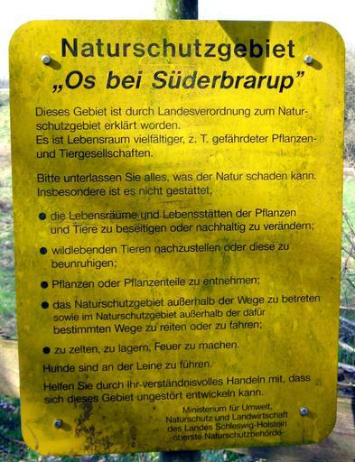 Keywords: Schild Naturschutzgebiet Os bei Süderbrarup.jpg de Hinweisschild am Anfang Heidbergweg des Weges im Naturschutzgebiet own Hedwig von Ebbel erstellt 2009-04-10 Os bei Süderbrarup