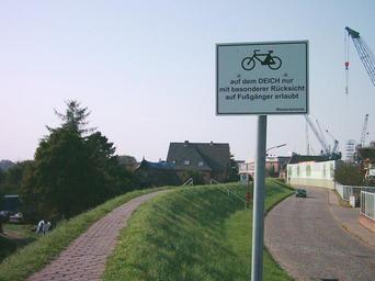 | Keywords: Schild Radfahrer Deich.jpg Hinweisschild für Radfahrer Deich in Hamburg-Neuenfelde Fietsen is op deze dijk alleen toegestaan als men bijzonder goed oplet op voetgangers own 2006-09 GeorgHH zur freien Verwendung public domain Bikeways in Hamburg Dikes in Hamburg Hamburg-Neuenfelde Cyclist additional signs Cycling signs in Germany |