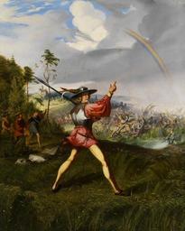 | Keywords: Schlacht von Dürnkrut und Jedenspeigen 19Jh.jpg Die Schlacht von Dürnkrut und Jedenspeigen oil canvas 77 x 62 cm Links unten monogrammiert SM http //www hampel-auctions com/ Hampel Auctions century 19 žSM PD-old-100 Dürnkrut Paintings of battles Paintings with signatures lower right Pointing up in art 19th-century paintings location missing Rainbows in paintings People with rainbows in art Images from Hampel Auctions | ||||