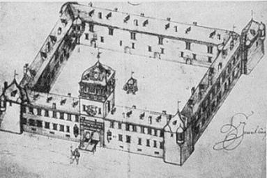 Keywords: Schloss Neuhaus Hoer.gif Schloss Neuhaus Saarbrücken Zchn v Heinrich Hoer 17 Jh Staatsarchiv Wiesbaden Heinrich Hoer PD-Art Schloss Neuhaus