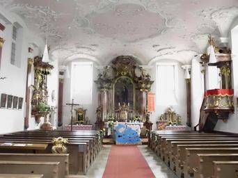 Keywords: Schlosskapelle gegen Osten.JPG de Absberg Landkreis Weißenburg-Gunzenhausen Bayern Ehemaliges Deutschordensschloss Inneres der Schlosskapelle heute Kath Pfarrkirche St Ottilia gegen Osten own Rensi Saint Odile Church Absberg Cc-zero