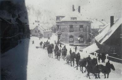 | Keywords: Schönheide im Erzgebirge – Schneepflug früher.jpg de Winter in den 1930er Jahren Eine Szenerie am Bayerischen Hof Zwölf Pferde ziehen den hölzernen Schneepflug dessen seitliche Schieber durch Balken so eingestellt werden konnten daß die Straße in der ganzen Breite geräumt werden konnte Wenn ein Auto entgegen kam oder überholen wollte mußte der Schneepflug anhalten der Balken abgenommen und eine Schieberseite eingeklappt werden dabei zur Seite gezogen von den hinter dem Schneepflug mitgeführten Pferden Damit dies leichter ging waren an den seitlichen Schiebern höhenverstellbare Räder angebracht Wenn starker Schneefall war mußte mit dem Schneepflug die ganze Nacht hindurch gefahren werden Die Pferde gehörten den Fuhrunternehmern und den Bauern des Dorfes Im Winter konnten sie so etwas hinzuverdienen Welch eine Schinderei für Männer und Pferde Schneepflüge dieser Art waren bis in die 1950er Jahre in Gebrauch Dann wurden sie durch die heute noch üblichen LKW-Schneepflüge ersetzt die jeweils eine Straßenseite räumen Zum 475-Jahr-Jubiläum des Besiedlungsbeginns 2012 in der ehemaligen Mehlhorn-Schmiede im Fenster ausgestellte Fotokopie eines alten Fotos History of Schönheide own Klaaschwotzer 2012-12-08 Cc-zero Animals of Erzgebirgskreis |
