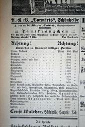 | Keywords: Schönheide im Erzgebirge Hauptstraße 90 2.jpg Das Wohnhaus Hauptstraße 90 beherbergte früher ein Lebensmittelgeschäft in dem die in diesem Bereich Schönheides Wohnenden alles Lebensnotwendige zu kaufen bekamen In den späten 1950er/Anfang der 1960er Jahren wurde das Geschäft geschlossen - Ein kleiner schmaler Garten oberhalb des Dorfbachs von einer Mauer gestützt hat die Form eines spitzen Dreiecks Er gehört zum Haus Hauptstraße 90 ist aber durch einen Weg vom Grundstück Hauptstraße 90 getrennt Sein an die 100 Jahre altes Gartenhäuschen wurde im September 2015 auf das Gelände des Bürsten- und Heimatmuseums neben der Martin-Luther-Kirche umgesetzt insbesondere im Sockelbereich saniert und mit neuer Farbe versehen Auf den äußeren Balken des Gartenhäuschens hatten oft Rotschwänzchen ihre Nester - Eine Anzeige im Schönheider Wochenblatt in den 1920er Jahren Scan einer Zeitungsanzeige 1920er Jahre Klaaschwotzer Cc-zero Hauptstraße 90 Schönheide Schönheider Wochenblatt |