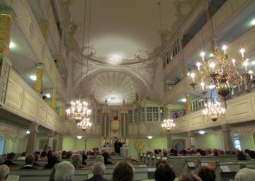 | Keywords: Schönheide im Erzgebirge - Inneres der Martin-Luther-Kirche.jpg Schönheide im Erzgebirge Blick nach Osten der nach Plänen von Christian Döltz von 1766 bis 1773 errichteten Saalkirche mit drei Emporen Nach einem großen Umbau 1902/3 wurde das Innere 1964 renoviert Eine Restaurierung in den 2000er Jahren machte einige der puristischen à bermalungen der 1960er Jahre rückgängig und stellte die frühere Farbgebung wieder her Auch nach dem Umbau am Anfang des 20 Jahrhunderts blieb die Rokoko-Ausstattung weitgehend erhalten Die hölzernen Säulen der Emporen sind sorgfältig marmoriert um den Eindruck der Verwendung von Marmor zu erwecken Nach der Fertigstellung des Baus 1773 zog sich der Innenausbau bis 1790 hin die Malerarbeiten wurden erst 1835 beendet Die lange Zeit für Bau Ausbau und Ausmalung hatte ihren Grund in der finanziellen Enge der Kirchengemeinde die ihren Kirchenbau ohne hohe Verschuldung errichten wollte Der Messingleuchter im Vordergrund ist datiert auf das Jahr 1708 Die Namen der Spender sind auf einer am Leuchter angebrachten Tafel mit diesem Text aufgeführt Diesen Leuchter haben gestifft Folgende Personen wie sie hier aufgeZeugnet sindt den 13 October 1708 gen Schonheyde Adam Gerisch Peter Leistner Georg Oschatz Christoph Gerisch Christian Gerisch Adam Schwab Christian Heydenfelder Christoph Schlesinger Christian Schlesinger Michael Schlesinger Oswaldt Unger Esaias Meckel Melchior Meckel Die anderen Messingleuchter dürften erst in der 2 Hälfte des 20 Jahrhunderts in die Kirche gekommen sein und zwei über dem Mittelgang hängende Leuchter von 1888 und 1896 ersetzt haben Schönheide dans les Monts Métallifères une eglise Rococo avec trois galeries et la chaire à prêcher au-dessus de la table de communion le chandelier de laiton au premier plan sur la droite est dater ž1708 own Klaaschwotzer 2011-06-19 Cc-zero Cultural heritage monuments in Schönheide Martin Luther Church in Schönheide |