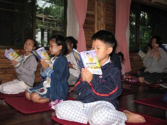 Keywords: school children learning buddhism buddhists camp meditate thailand meditation