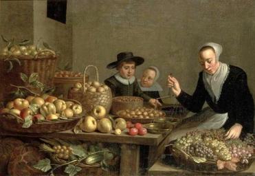 | Keywords: Schooten Fruit stall.jpg Artwork Creator Floris van Schooten s 1620 oil canvas cm 108 156 Institution Warsaw Royal Castle accession number ZKW 2220 object history ProvenanceEvent 1988 purchase Royal Castle Warsaw credit line Dorota Juszczak Hanna Małachowicz 2007 Zamek Królewski w Warszawie malarstwo do 1900 katalog zbiorów Zamek Królewski w Warszawie ISBN 83-70221-68-8 cat no 287 own BurgererSF See below PD-old-100 DEFAULTSORT 1620s; Fruit stall Floris van Schooten Dutch paintings in the Royal Castle in Warsaw 17th-century shops and merchants in painting Fruit markets in art Paintings of grapes Plums in paintings |
