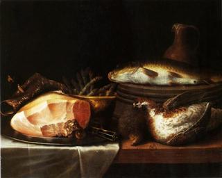 | Keywords: Schooten Still life with ham.JPG Artwork Creator Floris van Schooten firsthalf other date century 17 oil canvas cm 54 5 68 Institution Porczyński Gallery accession number object history 1986 4 9 purchase Sotheby's no 51 credit line F V S signature p 196 Danuta Rago Maria Raczyńska 1988 Kolekcja imienia Jana Pawła II z fundacji Janiny i Zbigniewa Karola Porczyńskich Krajowa Agencja Wydawnicza See below PD-old-100 DEFAULTSORT 1650 before; Still life with ham Floris van Schooten Dutch paintings in the Porczyński Gallery |