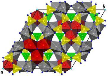 | Keywords: Schorl structure.png en Crystal structure of schorl NaFe3Al6 BO3 3 Si6O18 OH 4 R3m projected onto the a b plane of the hexagonal cell Red iron gray aluminium cyan sodium yellow silicon blue oxygen green boron The hydrogen atoms are not represented own Perditax 2010-09-14 Schorl Crystal structures Cyclosilicates Sodium compounds Aluminium compounds |