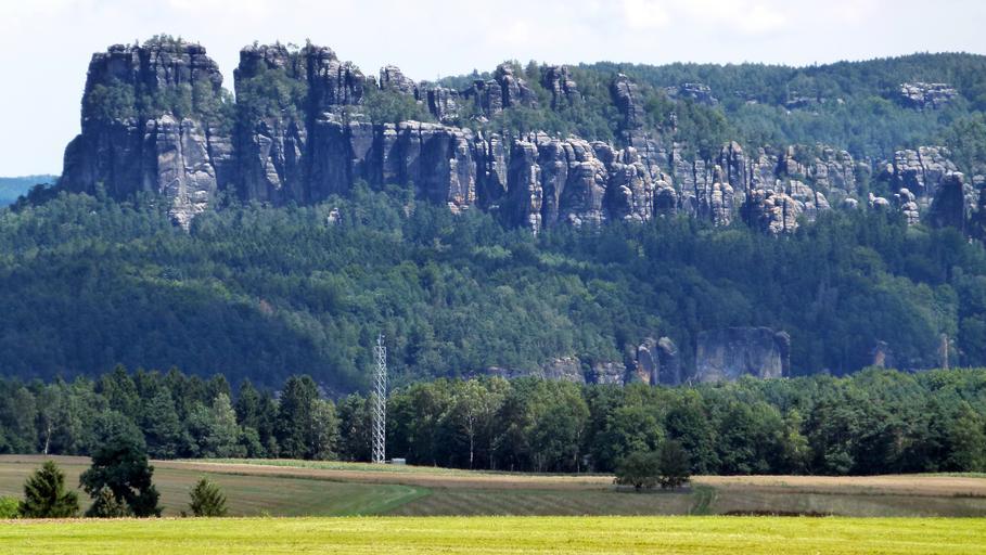 Keywords: Schrammsteine Sächsische Schweiz 1.JPG de Blick auf die Schrammsteine von Kleinhennersdorf aus 2012-08-07 own Brücke-Osteuropa cc-zero Uploaded with UploadWizard Schrammsteine