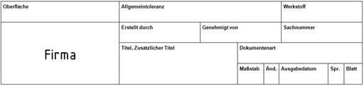 | Keywords: SchriftfeldDIN7200.png en An example for a title block on technical drawings according to EN ISO 7200 de Ein Beispiel für ein Schriftfeld auf technischen Zeichnungen nach EN ISO 7200 own Timetraveler 2010-05-29 Technical drawings with frame EN ISO 7200 |