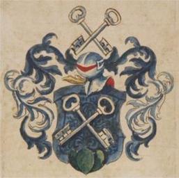 | Keywords: Schupp Wappen Schaffhausen B08.jpg Familienwappen aus den genealogischen Registern der Stadt Schaffhausen angelegt von Johann Ludwig Bartenschlager 1692 “1773 ab 1744 8 Band Sch <br />Familie Schupp http //www stadtarchiv-schaffhausen ch/Schaffhausen-Geschichte/Genealogie/Register/ between 1744 1773 author PD-old-100 Coats of arms of families from Schaffhausen Genealogische Register Schaffhausen Bartenschlager Heraldic lambrequins argent and azure Keys saltirewise in heraldry | ||||