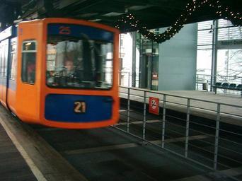 | Keywords: Schweb02012006-023.JPG 2005-12-30 own assumed Stefan17675~commonswiki Schwebebahn station Robert-Daum-Platz 2005 photographs of Wuppertal Wuppertal Schwebebahn trains 1972er Blue and orange Coupling systems of Wuppertal Schwebebahn WSW GTW 72 Christmas decorations in Wuppertal low quality |