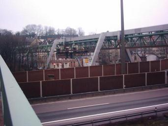 Keywords: Schweb23122005-005.JPG 2005-12-20 own assumed Stefan17675~commonswiki low quality Advertisements on 1972er blue and orange Wuppertal Schwebebahn trains Sonnborner Kreuz 2005 photographs of Wuppertal Noise barriers in Wuppertal
