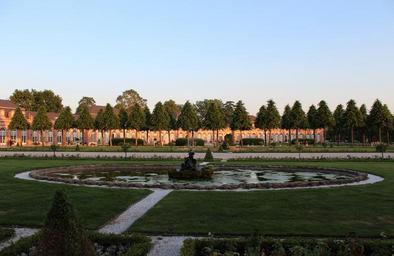 Keywords: schwetzingen castle castle park schlossgarten evening park beautiful flower bed orange walk fountain trees