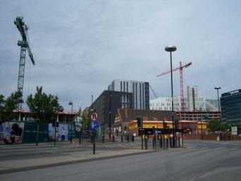 | Keywords: Science Central & Downing Plaza, Newcastle upon Tyne, 4 September 2013.jpg The view NE across St James' Boulevard Newcastle upon Tyne with a green crane building the first block of the Science Central development and a red crane building the last block of the Downing Plaza with both separated by Wellington Street development on the north side of Wellington with the already completed Block F Central St James and Block B Business School also visible own 2013-09-04 Ultra7 Downing Plaza Newcastle upon Tyne St James' Boulevard |