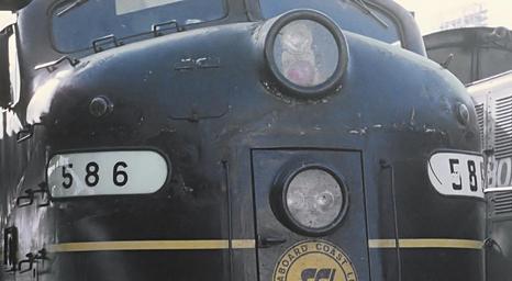 SCL 586 and Bondo (25192992970).jpg en While editing this scan of Roger Puta's slide of SCL 586 I noticed what looked like a Bondo job on the upper nose Note the different number boards What do you think <br> SCL E8A 586 with Train 57 The Silver Meteor at Miami FL on March 13 1971 2016-03-03 20 00 52 https //www flickr com/people/129679309 N05 railfan 44 https //www flickr com/photos/129679309 N05/25192992970/ User Fæ/Flickr API Puta's CSX and Roads absorbed into CSX except for Conrail Railroads train railroad railfans American Rails North American Railroads Eastern U S Railfanning Fine Art Photography of Railroading Railroad Picture Hall of Fame Railroad Photography Junction Mel Finzer RogerPuta Photographs by Roger Puta Photos uploaded from Flickr by Fæ using a script 1971 in rail transport in the United States Seaboard Coast Line Railroad March 1971 in the United States |