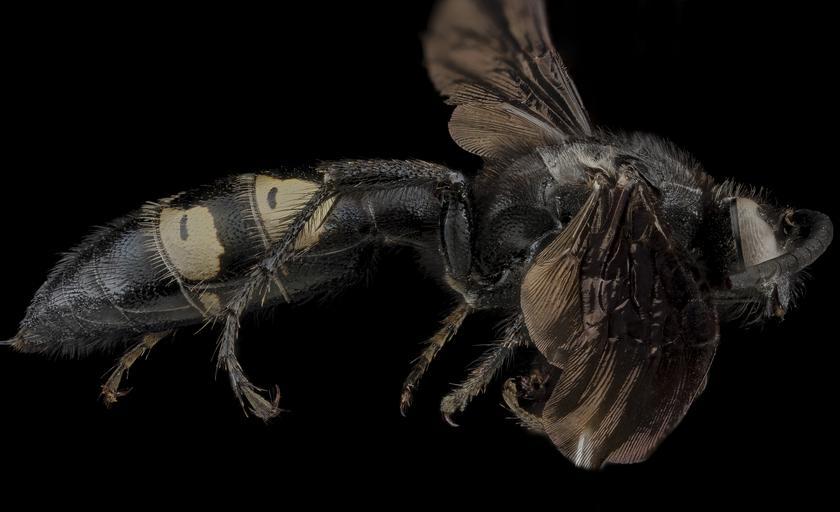 | Keywords: bug bugs wasp wasps animal animals animalia arthropod arthropods arthropoda insect insects insecta hymenoptera aculeata vespoidea scoliid wasp scoliidwasp scoliid wasps scoliidwasps scoliidae scolia scolia bicinata scoliabicinata taxonomy:binomial=scolia bicinata taxonomy:binomial=scoliabicinata usgs biml massachusettes national park service nationalparkservice cape cod national seashore capecodnationalseashore usgsbiml black background A wasp species. Note the lovely folds and ridges in the wing, a feature of the wasp family Scoliidae. This specimen was collected as part of a bee survey of Cape Cod National Seashore and its larva are parasitoids of beetle grubs. This dark specimens was difficult to shoot and retain much detail in the dark areas. Canon Mark II 5D, Zerene Stacker, 65mm Canon MP-E 1-5X macro lens, Twin Macro Flash, F5.0, ISO 100, Shutter Speed 200, link to a .pdf of our set up is located in our profile A wasp species. Note the lovely folds and ridges in the wing, a feature of the wasp family Scoliidae. This specimen was collected as part of a bee survey of Cape Cod National Seashore and its larva are parasitoids of beetle grubs. This dark specimens was difficult to shoot and retain much detail in the dark areas. Canon Mark II 5D, Zerene Stacker, 65mm Canon MP-E 1-5X macro lens, Twin Macro Flash, F5.0, ISO 100, Shutter Speed 200, link to a .pdf of our set up is located in our profile |
