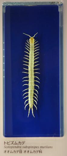 Keywords: Scolopendra subspinipes mutilans - National Museum of Nature and Science, Tokyo - DSC07551.JPG en Exhibit in the National Museum of Nature and Science Tokyo Japan Photography was permitted in the museum without restriction 2013-09-05 00 26 26 own Daderot cc-zero Zoology in the National Museum of Nature and Science Tokyo Uploaded with UploadWizard Scolopendra subspinipes