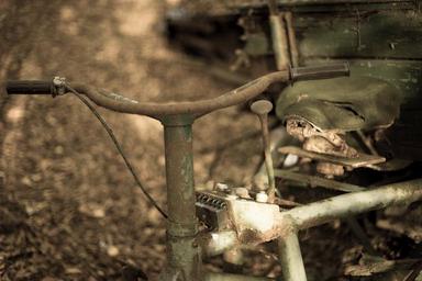 Keywords: scooter motorbike bike shift stick vehicle transportation transport motor vintage old fifties classic motorcycle abandoned weathered forgotten nostalgia neglected corroded rusty rusted rust green 50s sixties 60s 1950s 1960s aged worn