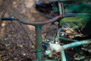 Keywords: scooter motorbike bike shiftstick vehicle transportation transport motor vintage old fifties classic motorcycle abandoned weathered forgotten nostalgia neglected corroded rusty rusted rust green 50s sixties 60s 1950s 1960s aged worn