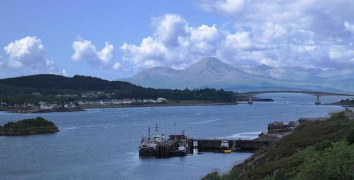 Keywords: scotland lake quiet sky blue clouds summer mountains natural silence view trees ship bridge