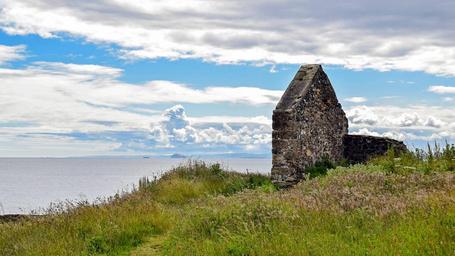 Keywords: scotland st andrews sea east coast coast meadow ruin substantiate clouds water sky outlook nature coastal landscape idyll