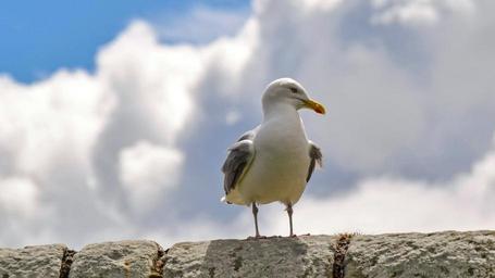 Keywords: scotland st andrews seagull sit sky clouds wall nature grass bird