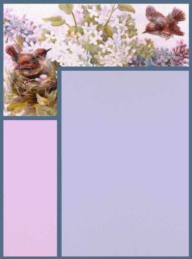 Keywords: scrapbook paper page frame stationary bird wren nest flower floral lilac tree branch leaf vintage antique victorian ornithology fowl creature feather design journal