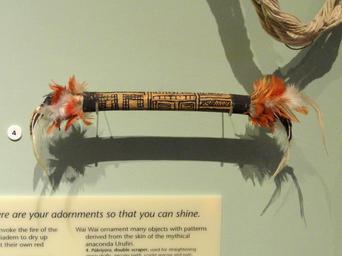 | Keywords: Scraper, Wai-wai people, peccary teeth with feathers - South American collection - Peabody Museum, Harvard University - DSC05683.JPG Scraper Wai-wai people peccary teeth with feathers Exhibit from the South American Collection Peabody Museum Harvard University Cambridge Massachusetts USA Photography was permitted without restriction; exhibit is old enough so that it is in the public domain Daderot 2012-03-18 14 28 42 Daderot cc0 cc0 South American Collection Peabody Museum Harvard University Wai-wai people Indigenous feather art of Brazil |