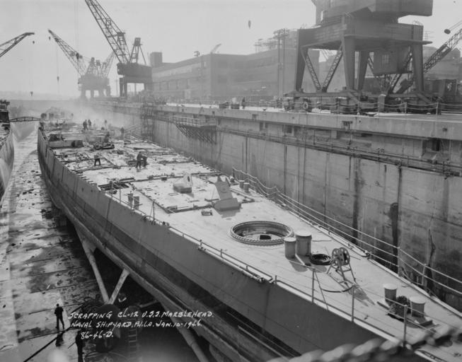 | Keywords: Scrapping of USS Marblehead (CL-12) 1946.JPG Scrapping of the light cruiser USS Marblehead CL-12 in Dry Dock No 4 at the Philadelphia Naval Shipyard 10 January 1946 LOC-image HAER PA 51-PHILA 709D-20 1946-01-10 Original Photograph in Collection of National Archives Mid-Atlantic Regional Records Center Philadelphia http //lcweb2 loc gov/cgi-bin/displayPhoto pl path /pnp/habshaer/pa/pa3300/pa3396/photos topImages 359817pr jpg topLinks 359817pv jpg 359817pu tif title 20 20 20Scrapping 20C1-12 20U S S 20Marblehead 20Naval 20Shipyard 20Philadelphia 20January 2010 201946 20Original 20Photograph 20In 20Collection 20of 20National 20Archives 20Mid-Atlantic 20Regional 20Records 20Center 20Philadelphia 3Cbr 3EHAER 20PA 51-PHILA 709D-20 displayProfile 0 frame removed PD-USGov USS Marblehead CL-12 Philadelphia Naval Shipyard History of industry in Pennsylvania |