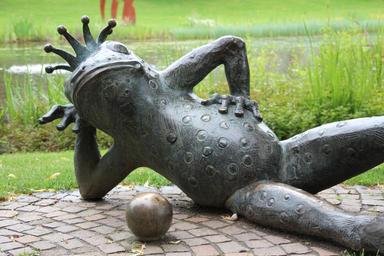 Keywords: sculpture art artwork mythical creatures frog frog prince crown concerns stone fairy tales