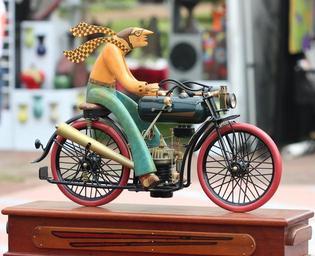 Keywords: sculpture bicycle motorcycle art vintage motor scarf tires bike cyclist wheel statue metal old