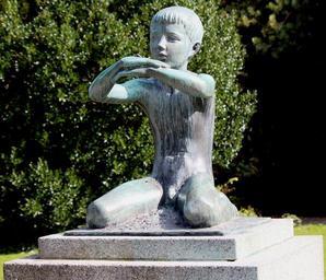 Keywords: sculpture bronze socket boy naked gestures lake park lake constance romanshorn
