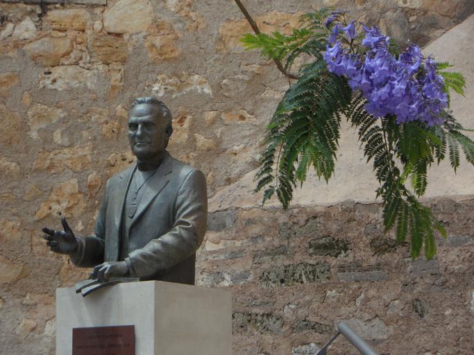 Keywords: sculpture famous personality son of the city algaida memorial stone bust fig man metal statue