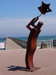 Keywords: sculpture fig art artistically schönberger beach forward rain umbrella stormy metal water summer resort holiday