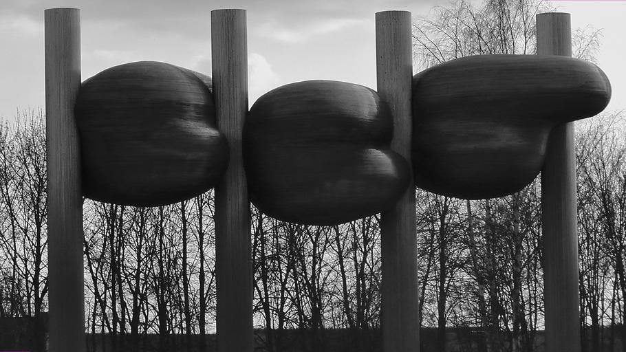 Keywords: sculpture iron fig symbol metal black and white