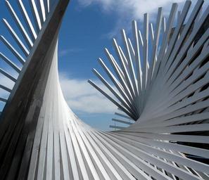 Keywords: sculpture mainz town hall square art steel construction architecture futuristic light shadow abstract