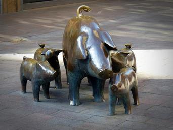 Keywords: sculpture pigs piglet bronze art