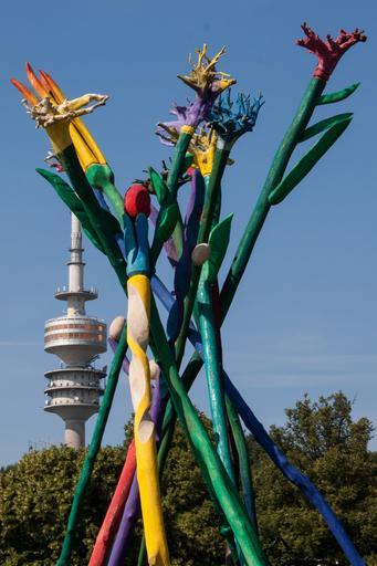 Keywords: sculpture statue wood painted flowers colorful tv tower