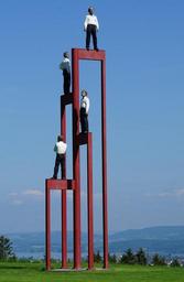 Keywords: sculpture the tower art bronze man stephan balkenhol ermatingen wolf mountain untersee lake constance thurgau lake back