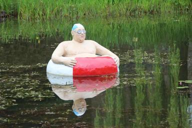 Keywords: sculpture water relax art fig swim man donut bathing cap swim goggles