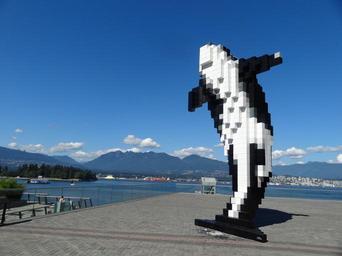 Keywords: sculpture whale outdoor vancouver mountain statue culture water sky